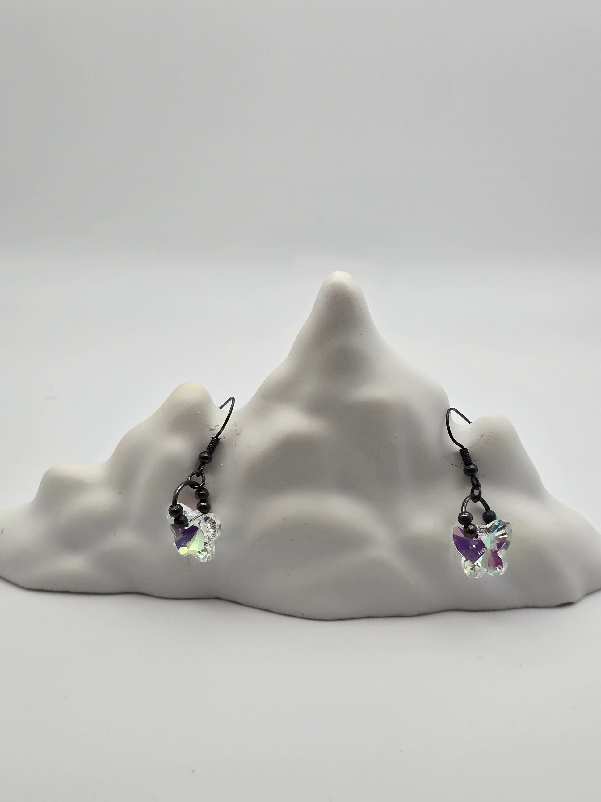 A subtle nod that karma always finds its way—you're just along for the show. Ionized, blackened stainless steel and energized aurora borealis crystal.