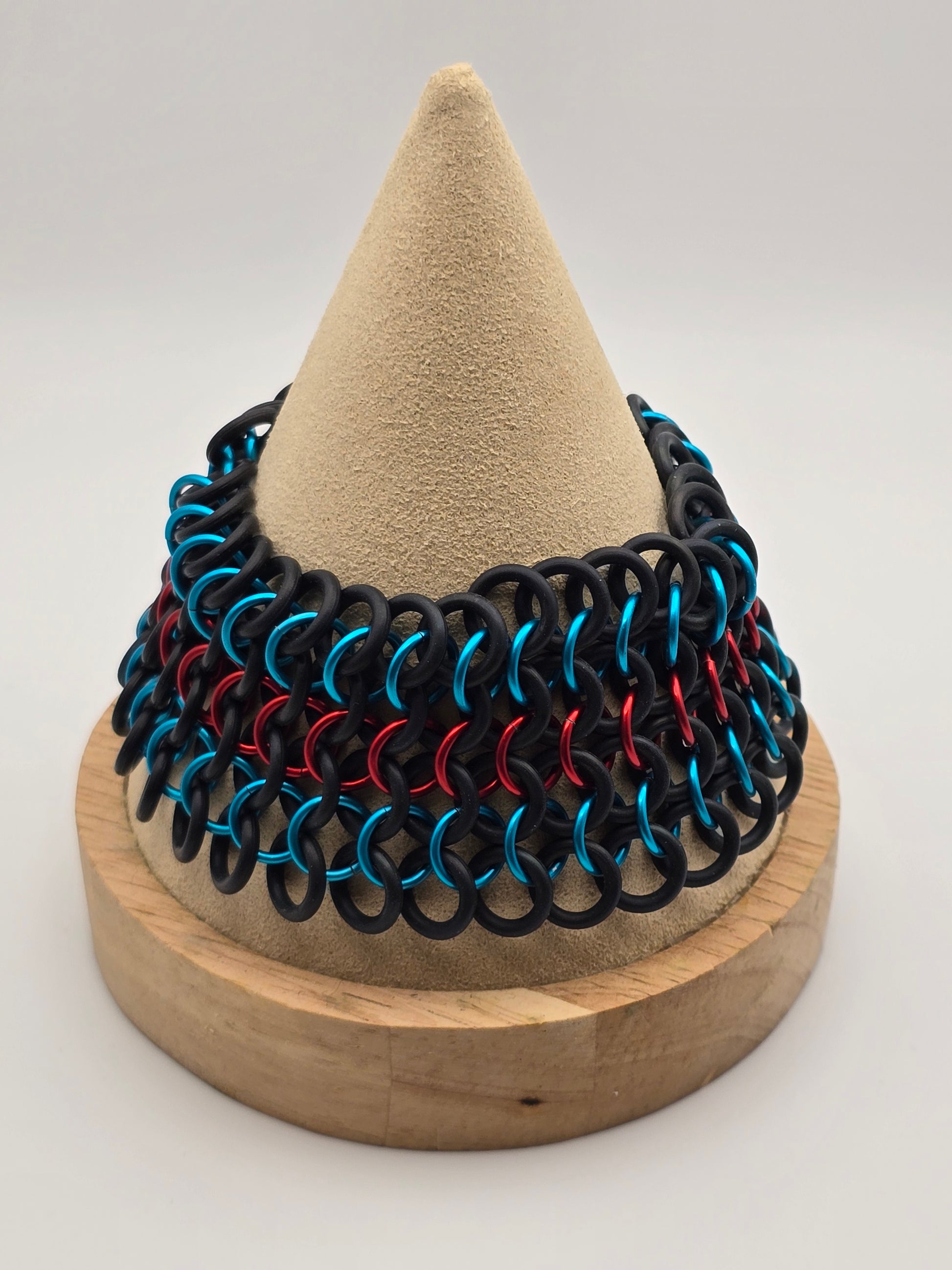 Made of hypoallergenic EPDM Rubber and anodized aluminum. Fits wrists 7 - 8 inches comfortably. Stretchy! Easy-on, easy off!.